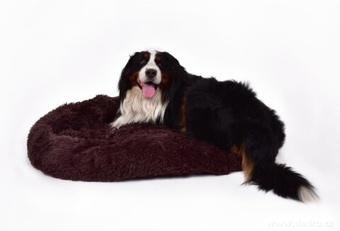 Velký pelíšek LAGOON VELVET (Ø 120 cm) v čokoládové barvě z jemného mikrovlákna s dlouhým vlasem. Hebký, nadýchaný a pohodlný pelíšek s protiskluzovou spodní částí pro psy i kočky.