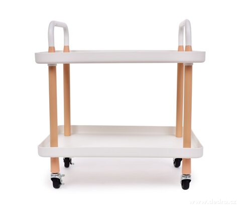 TROLLEY 2patrový pojízdný vozík v bílé barvě. Multifunkční regál na kolečkách s kovovými madly, vhodný do kuchyně, koupelny, obýváku i jako servírovací stolek. Stylový design a snadná manipulace.
