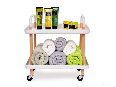 Praktický a elegantní zároveň – to je TROLLEY 2patrový vozík v bílé barvě. Díky čtyřem kolečkům s brzdou a pevným kovovým madlům se snadno přesouvá z místnosti do místnosti a okamžitě poskytne úložný prostor přesně tam, kde ho potřebujete. Využijete ho v kuchyni na dózy, v koupelně na kosmetiku a ručníky, v obýváku na dekorace nebo i jako servírovací stolek při posezení s hosty. Bílý design působí moderně a vzdušně, takže zapadne do každého interiéru.