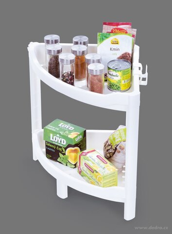Maximální pořádek na minimálním prostoru! PERFOR rohový regál 2patrový využije i ten nejmenší kout a promění ho v praktické úložné místo – whether na kosmetiku v koupelně, kořenky v kuchyni nebo hračky v dětském pokoji. Díky perforovaným policím je vhodný i do vlhkých prostor a přídavné háčky se postarají o nejrůznější drobnosti.