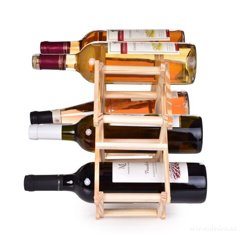 SKLÁDACÍ VINOTÉKA/STOJAN NA VÍNO z borovicového dřeva, až na 10 lahví.