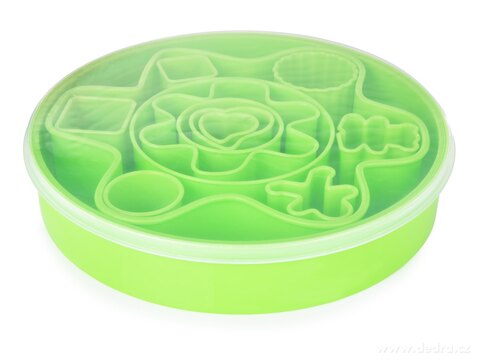 Vyrobeno z odolného plastu. Průměr balení 23 cm, výška vykrajovátek 4 cm.