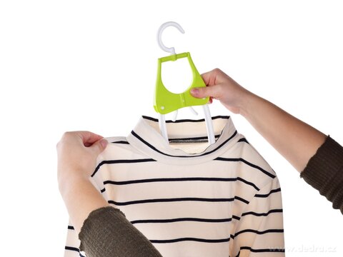 Už žádné vytahané výstřihy! Skládací ramínko GENIUS má chytrý mechanismus, díky kterému ho snadno vložíš i vyjmeš úzkým výstřihem, aniž bys musela oblečení přetahovat přes široké ramena běžných ramínek. Stačí stisknout – a ramena se sklopí dovnitř. Perfektní na všechny jemné svetry, roláky, mikiny a halenky, které si chceš udržet v top kondici.