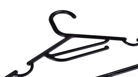 Praktické plastové ramínko pro zavěšení kalhot i halenek s očkem na pověšení pásku či šátku.