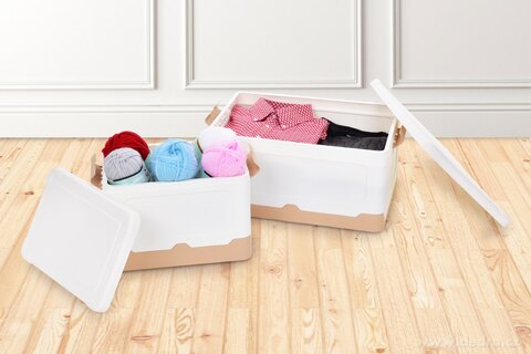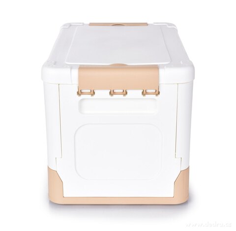 Úložný box s víkem s možností zacvaknutí na dvě klipsy, úchyty po stranách pro snadné přenášení.