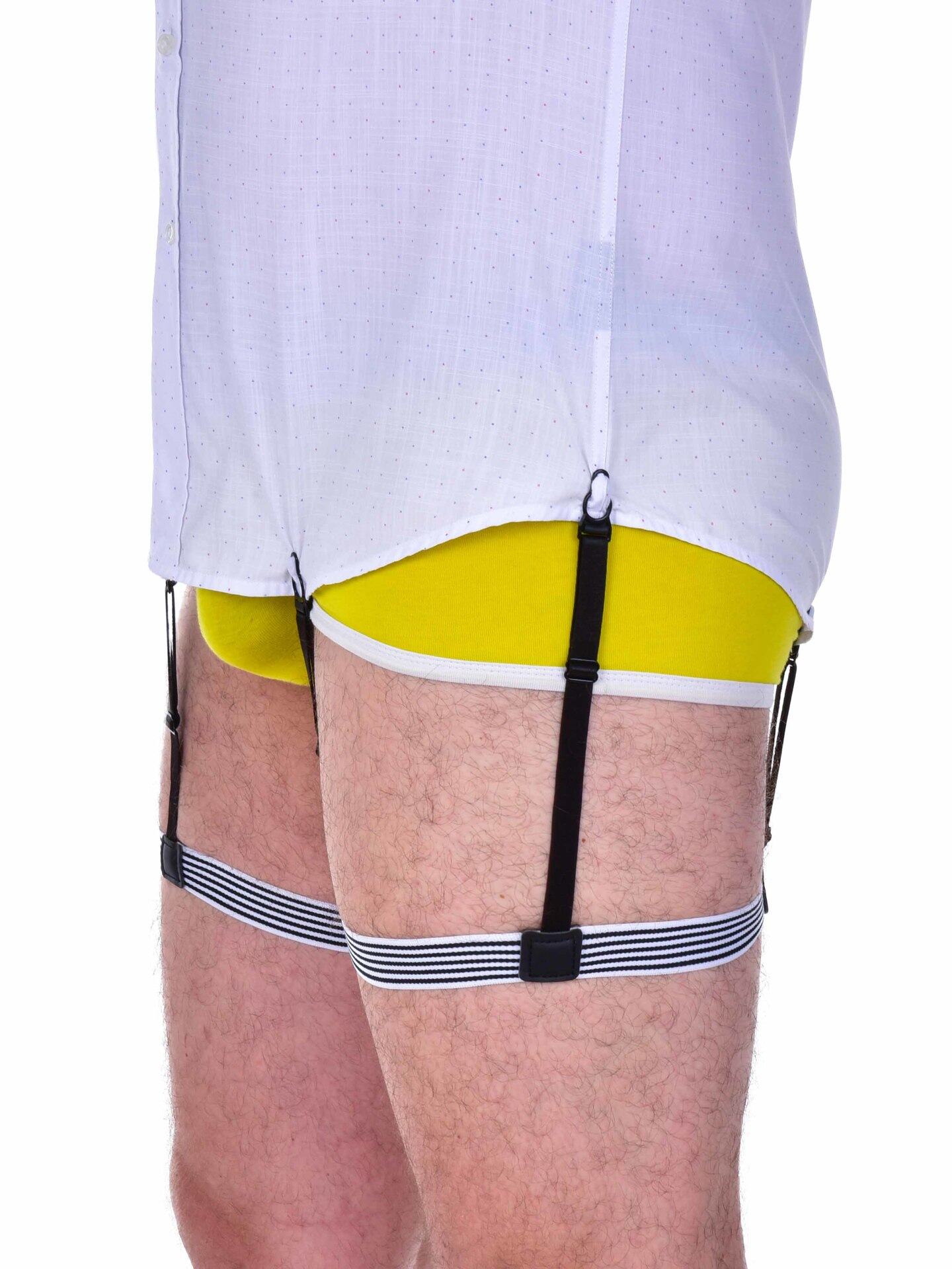 Napínače košile PUSH DOWN (2 ks) s nastavitelnou délkou a třemi elastickými pásky udrží košili zastrčenou po celý den. Upevnění na nohu pomocí klipsů. Ideální pro muže i ženy do práce, na jednání i formální akce. Už žádné upravování a vyhrnuté okraje košile.
