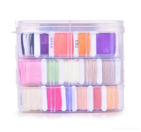 XL velký vyšívací kufřík, sada vyšívacích potřeb v patrovém plastovém kufříku, odnímatelná patra. Rozměry boxu: š 16 x h 15,5 x v 13 cm. Návin na jedné cca 8 metrů.