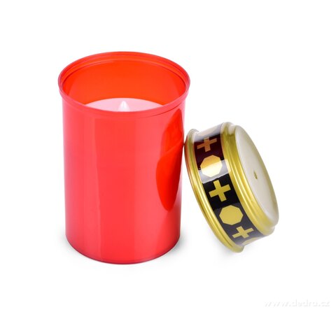 LED pietní svíce HROBEX® na tužkové baterie jemně problikává červeným světlem a věrohodně napodobuje plamen klasické svíčky. Je odolná proti povětrnostním vlivům, bez sazí a vosku. Průměr 7 cm, výška 12 cm. Bezpečná a dlouhodobá varianta.