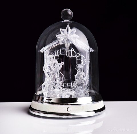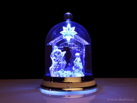 LED svítící betlém uvnitř šturcu, svítící a hrající melodie (lze je vypnout).