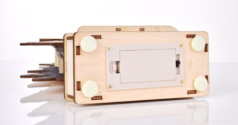 Dřevěná detailně propracovaná dekorace. Rozměry: š 20 x h 8 x v 40 cm. Napájení na 2 tužkové baterie 1,5 V AA (nejsou součástí balení)