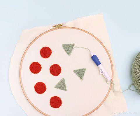 PUNCH NEEDLE technika vyšívání dutou jehlou je snadná a rychlejší, jehlu nemusíme látkou provlékat, pouze ji propichujeme.