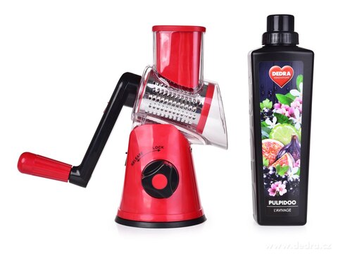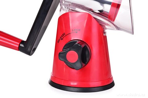 Součástí balení: 3 výměnná nerezová struhadla (hrubé, jemné, plátkovací), pěchovadlo