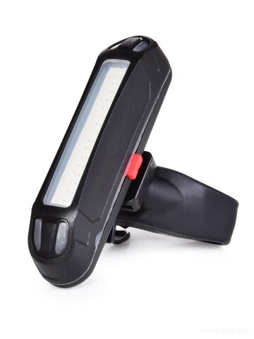 Nabíjecí LED zadní světlo BIKE s USB a výkonným červeným COB páskem. 6 režimů blikání, naklápěcí tělo, silikonový řemínek pro rychlou montáž. Dlouhá výdrž a vysoká svítivost pro vaši bezpečnost.