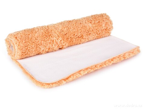 SPA koupelnová předložka 75 × 45 cm z hebkého mikrovlákna v meruňkové barvě. Měkká, savá a příjemná na dotek. Protiskluzová spodní úprava pro bezpečnost. Lze prát při 30 °C.