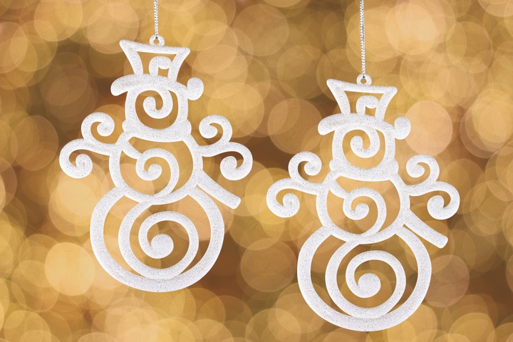 Sada 2 závěsných sněhuláků z kolekce LEDOVÉ KRÁLOVSTVÍ, výška 13 cm. Třpytivý povrch s efektem ojíněného ledu dodá stromku, oknu i zimnímu aranžmá kouzelnou atmosféru zimní pohádky.