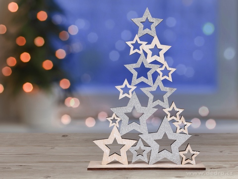 Elegantní dřevěný stromek ze stříbrných hvězd o výšce 39 cm. Stylová vánoční dekorace, která rozzáří tvůj interiér slavnostním leskem.
