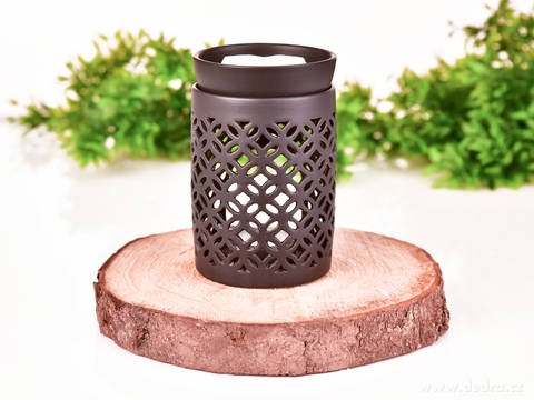 Keramická aromalampa s odnímatelnou miskou, matná glazura s krajkovým dekorem.