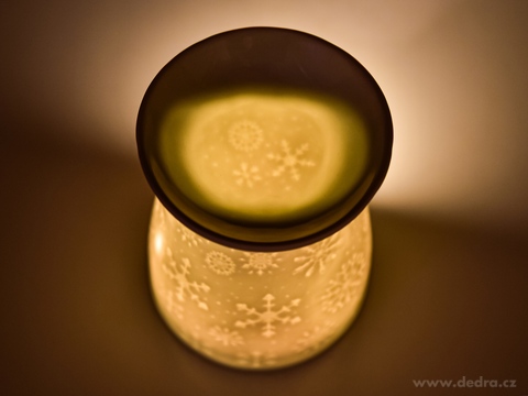 Zimní světlo, které hřeje… Aromalampa GLACIA je jako ztělesněná tichá zimní pohádka. Embosovaný motiv sněhových vloček se po zapálení svíčky jemně rozsvítí a promění keramické tělo v mihotající se lucernu plnou světelné něhy.
