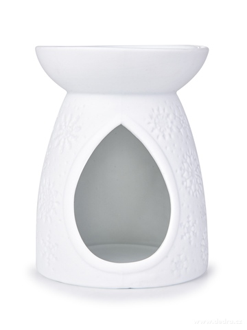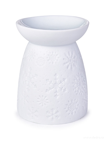 Keramická aromalampa GLACIA s embosovaným vzorem sněhových vloček a matnou bílou glazurou jemně prosvítá po zapálení svíčky. Elegantní zimní doplněk. Doporučujeme s vonnými vosky a esencemi PARFUMIA®. Průměr 9,5 cm, výška 12 cm.