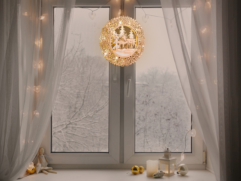 Díky svému průměru a detailnímu zpracování vynikne při zavěšení do okna, na stěnu nebo do výklenku. Přináší do interiéru eleganci, jemné světlo a útulnou zimní náladu.