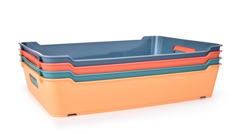 Měj doma víc velikostí PRAKTIK táců, složíš je do sebe a kdykoliv se hodí na servírování nebo jako elegantní pořádek tvůrce ve skříni – od kuchyně po pracovnu.