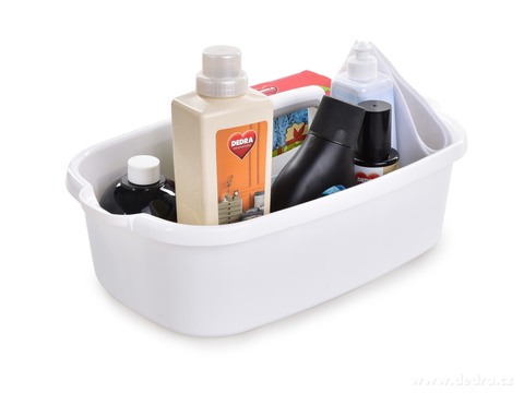 Praktický bílý nosič VODNESÚKLID o délce 42 cm s pevným madlem pro snadné přenášení. Udrží čisticí prostředky, hadry i nářadí přehledně pohromadě. Odolný plast, chytrý design a pohodlné uskladnění.