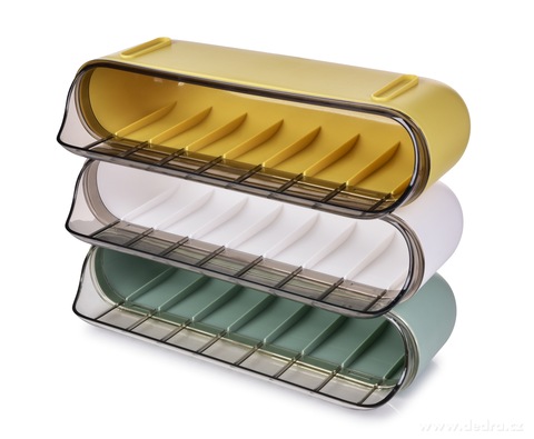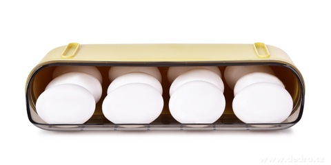 Vejce ukládej nová dozadu, aby starší automaticky sjížděla dopředu ke spotřebě. Skvělé řešení pro single domácnosti, menší rodiny či chataře, kteří chtějí mít v lednici nejen pořádek, ale i styl.