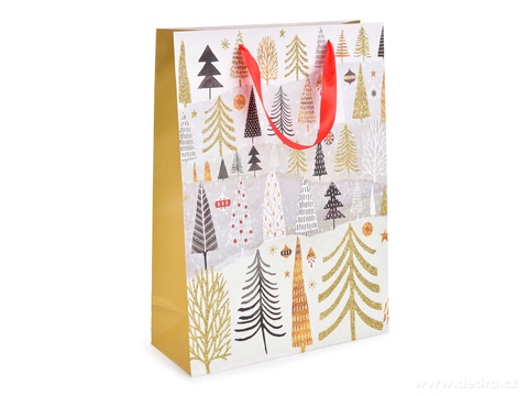 Dárková taška, motiv zdoben zlatými třpytkami | stromky, vel. XL