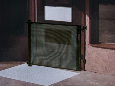Zatahovací zábrana. S instalačním materiálem v balení. Kombinace plastu a kovu, síť: polyester s vnější vrstvou PVC.