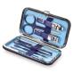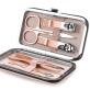 Luxusní 8dílná manikúrová sada z broušené nerezové oceli v elegantním pudrovém pouzdře. Obsahuje kleštičky, nůžky, pilník, pinzetu a další nástroje pro dokonalou péči o nehty a kůžičku. Praktické uzavíratelné pouzdro ideální i na cesty.