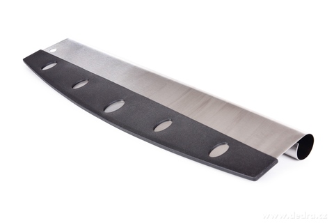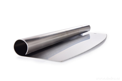 Kolébkový nůž PIZZA 35 cm z nerezové oceli s plastovým ochranným krytem. Ideální na krájení pizzy a jiných těst. Přesná čepel zachová suroviny na místě.