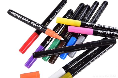 Sada 12 akrylových popisovačů v různých sytých odstínech s pigmentovým inkoustem na vodní bázi. Ideální pro kreativní tvorbu na plátno, dřevo, keramiku, plast, kámen, kov a další povrchy.