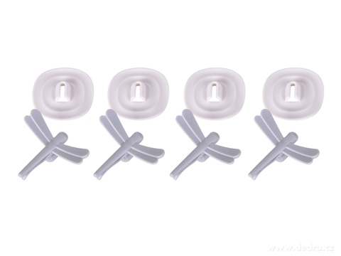 Sada 4 stylových magnetických háčků VÁŽKY v šedé barvě. Dva způsoby upevnění – magnetem na kovové povrchy nebo pomocí oboustranné pásky. Praktické háčky na ručníky, utěrky, tašky, kabely či uzavírání sáčků.
