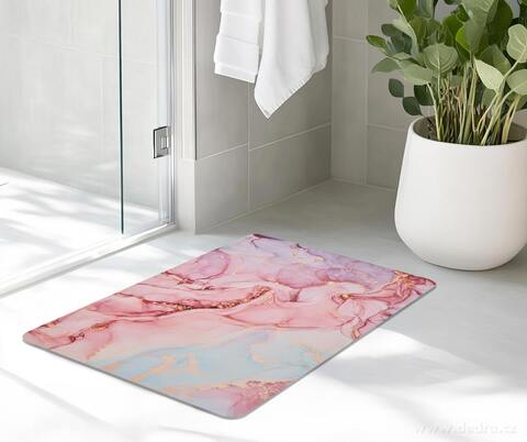 SPA ultrasavá křemelinová koupelnová předložka 60 × 90 cm v designu růžovo-modrého mramoru. Rychleschnoucí, protiskluzová a antibakteriální, ideální do koupelny, kuchyně, předsíně či k bazénu. Stylový a praktický doplněk do domácnosti.