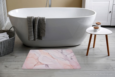 SPA ultrasavá křemelinová koupelnová předložka 60 × 90 cm v designu přírodního mramoru. Rychleschnoucí, protiskluzová a antibakteriální. Stylový a praktický doplněk do koupelny, kuchyně, předsíně i k bazénu.