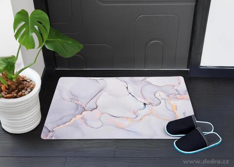 Ultrasavá koupelnová předložka SPA v designu šedo-zlatého mramoru kombinuje sofistikovaný vzhled s maximální funkčností. Vyrobená z přírodní křemeliny, během několika sekund pohltí vodu a rychle vyschne. Protiskluzová spodní část z přírodního kaučuku zajistí stabilitu a antibakteriální vlastnosti omezí vlhkost i nepříjemný zápach.