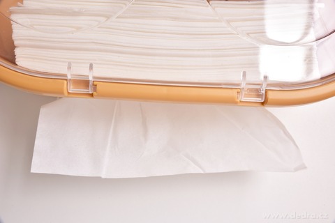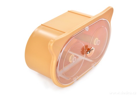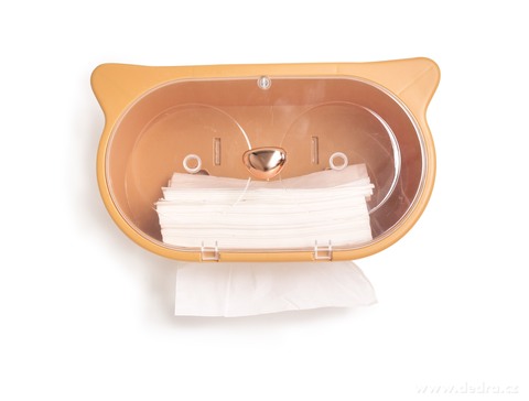 SOVA závěsná skříňka v meruňkové barvě pro 2 role toaletního papíru nebo ubrousky. Praktická 2v1 – úložný box a horní polička na mobil či drobnosti. Snadná samolepicí montáž bez vrtání.