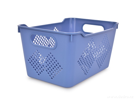 Perforovaný úložný box s uchy po stranách. Vyrobeno z pevného plastu