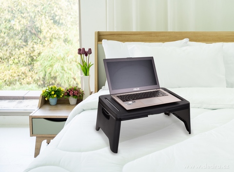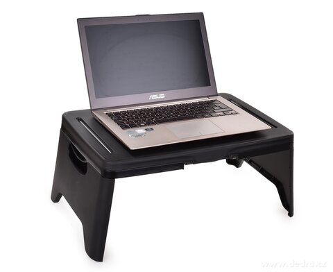 Ano, stolek je pevný a stabilní, vhodný i pro menší notebook nebo tablet.