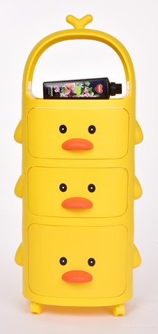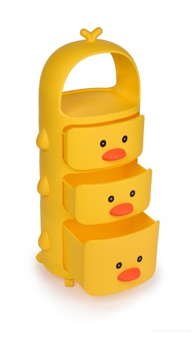 Veselý dětský regál KAČENKA se 3 prostornými zásuvkami a kolečky. Úložný box ve tvaru kačenky pomůže s uklízením hraček, oblečení i doplňků. Výška 99 cm, odolný plast, snadná manipulace a barevný design pro radost z uklízení.
