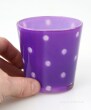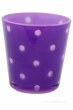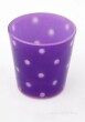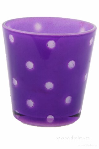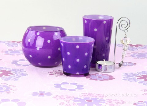 Skleněný svícen fialkový s puntíky, výška: 7,5 cm.