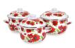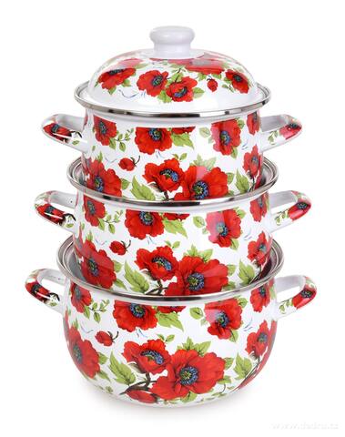 6 dílná sada smaltovaných hrnců s poklicemi. S motivem máků.