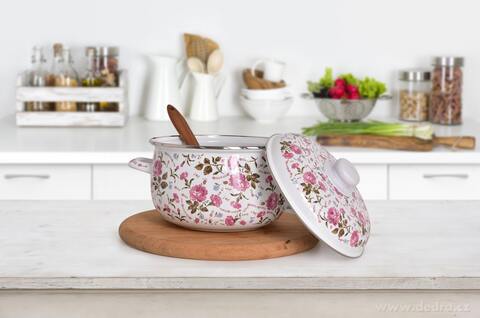 Retro smaltované hrnce RUSTICAL s květinovým motivem v 6dílné sadě. Silnostěnné, odolné, vhodné na všechny varné plochy včetně indukce i do myčky. Přináší domácí atmosféru a radost z vaření.