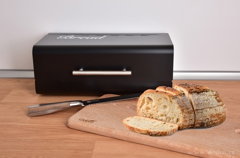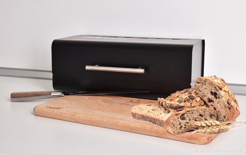 Stylový kovový chlebník GOURMET z kvalitní oceli s otevíracím víkem a protiskluzovými podložkami uchová pečivo čerstvé a vždy po ruce. Elegantní doplněk každé kuchyně.