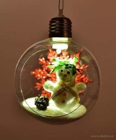 - Typ dekorace: Transparentní koule s LED osvětlením a vnitřní scénou