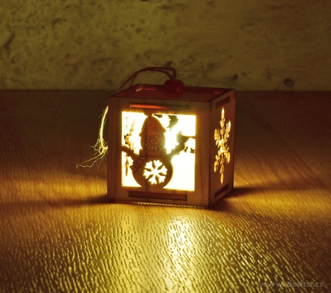 Roztomilý dřevěný domeček SVÍTÍCÍ SNĚHULÁČEK s LED svíčkou. Malá dekorace s motivem sněhuláka, rozměry 5 × 5 × 5 cm. Teplé světlo navodí pohádkovou vánoční atmosféru.