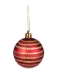 Sada 6 červených koulí se zlatými vodorovnými pruhy. Elegantní a třpytivá kombinace pro klasickou i luxusní vánoční výzdobu. Průměr každé koule 6 cm.