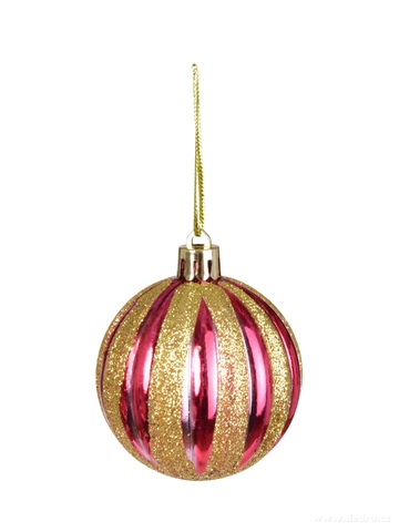 Kombinace metalické červeně a zlatého třpytu působí luxusně a přitom radostně. Pruhy opticky prodlužují kouli, takže na stromečku působí velmi elegantně a harmonicky. Sada je ideální pro vytvoření klasického, slavnostního i moderního aranžmá.