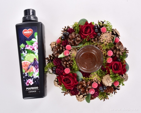 ČERVENÁ HARMONIE je dekorace, která vnese do interiéru klid a eleganci. Uprostřed věnce se nachází skleněný svícen, do něhož můžete vložit čajovou nebo menší válcovou svíčku. Po zapálení se celý věnec rozzáří jemným mihotavým světlem a vytvoří atmosféru intimního zimního večera.