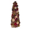 Dekorativní vánoční stromeček LESNÍ STROM ŽIVOTA z přírodních šišek, dřevěných květů, mechu a bobulí. Výška 43 cm, průměr základny 16 cm. Elegantní přírodní ozdoba na stůl, komodu i do předsíně.